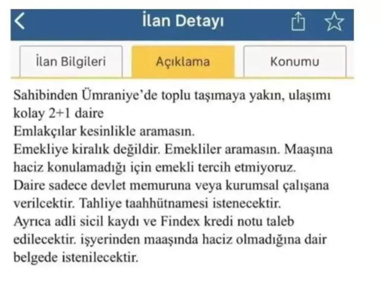 Ticaret Bakanlığı, emekliye kiralık değildir ifadesiyle yayınlanan gayrimenkul ilanlarının denetim süreçlerini titizlikle sürdürdüğünü açıkladı. Yapılan incelemeler sonucu, bu ilanların Taşınmaz Ticareti Hakkında Yönetmelik'e aykırı olduğunun belirlenmesi üzerine ilgili ilanlar yayından kaldırıldı ve bu ihlali gerçekleştiren emlak işletmesine idari para cezası uygulandığı bildirildi.