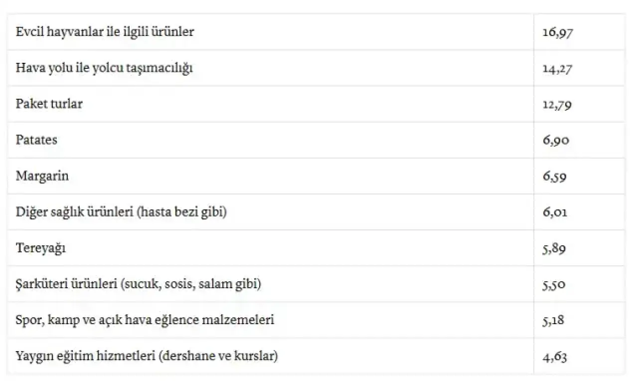 Kasım ayında evcil hayvanlarla ilgili ürünlerin ardından fiyatı en çok artan diğer ürünler arasında, patates de yer almakta. Bu dönemde patatesin fiyatı yüzde 6,9 oranında yükselirken, margarin yüzde 6,59, diğer sağlık ürünleri yüzde 6,01 ve tereyağı da yüzde 5,89'luk bir artış göstermiştir. Bu fiyat artışları, özellikle gıda tüketiminde fiyatların ne denli dalgalandığını net bir şekilde ortaya koyuyor. Tüketiciler, bu artışlar karşısında fiyat karşılaştırması yaparken daha dikkatli davranmak durumunda kalıyor. Ayrıca, sağlık ürünleri gibi zorunlu harcamalarda yapılan artışlar, hanelerin bütçesine ayrı bir yük getirmekte.