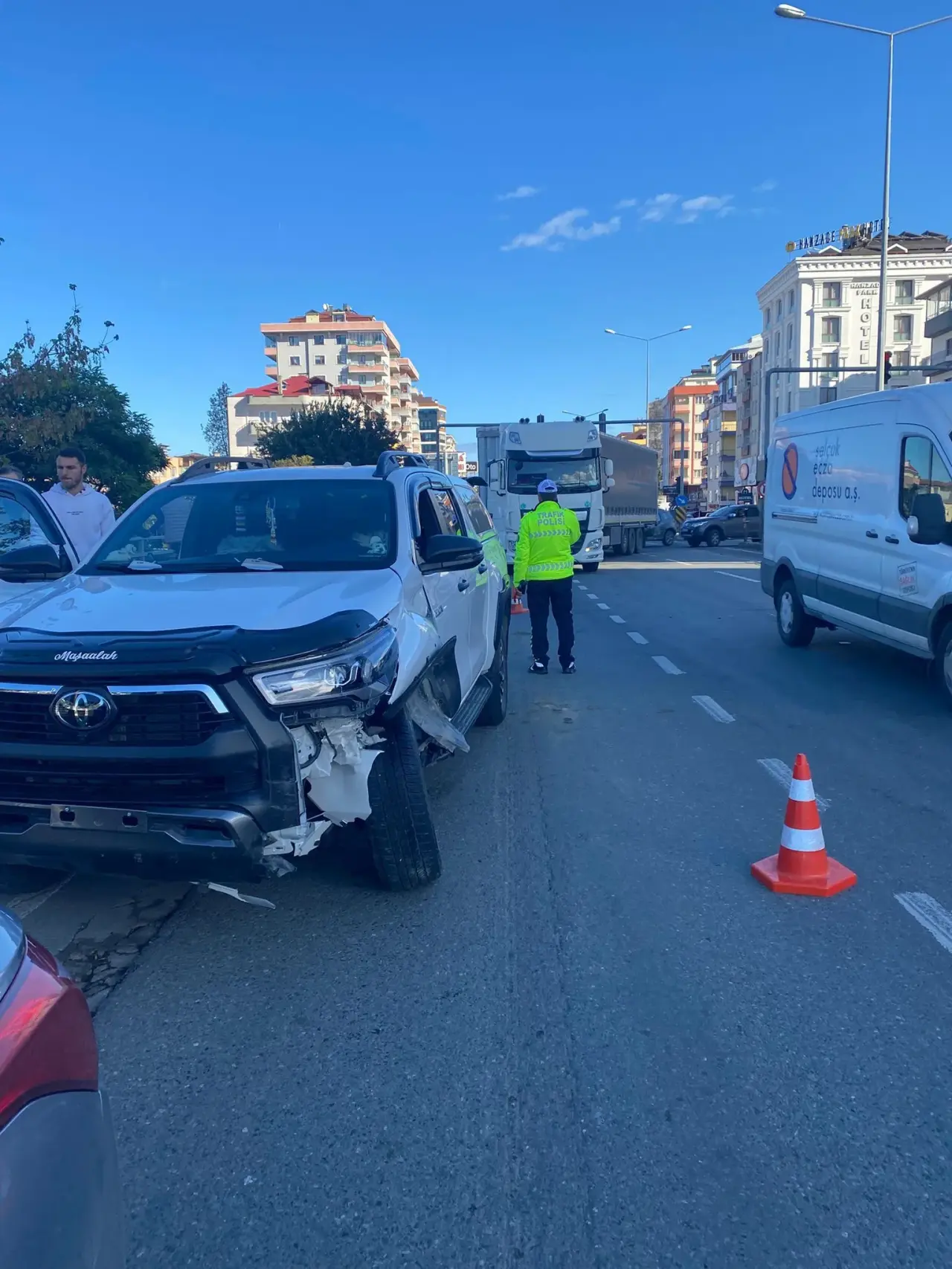 Akçaabat'ta bir TIR ve otomobilin çarpışması, bölgede büyük bir trafik kaosuna neden oldu. Kazanın ardından yollar adeta kapandı ve araçların geçişi zorlaştı.